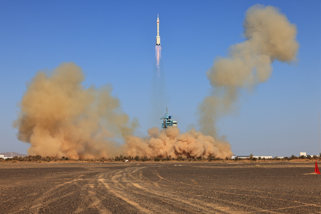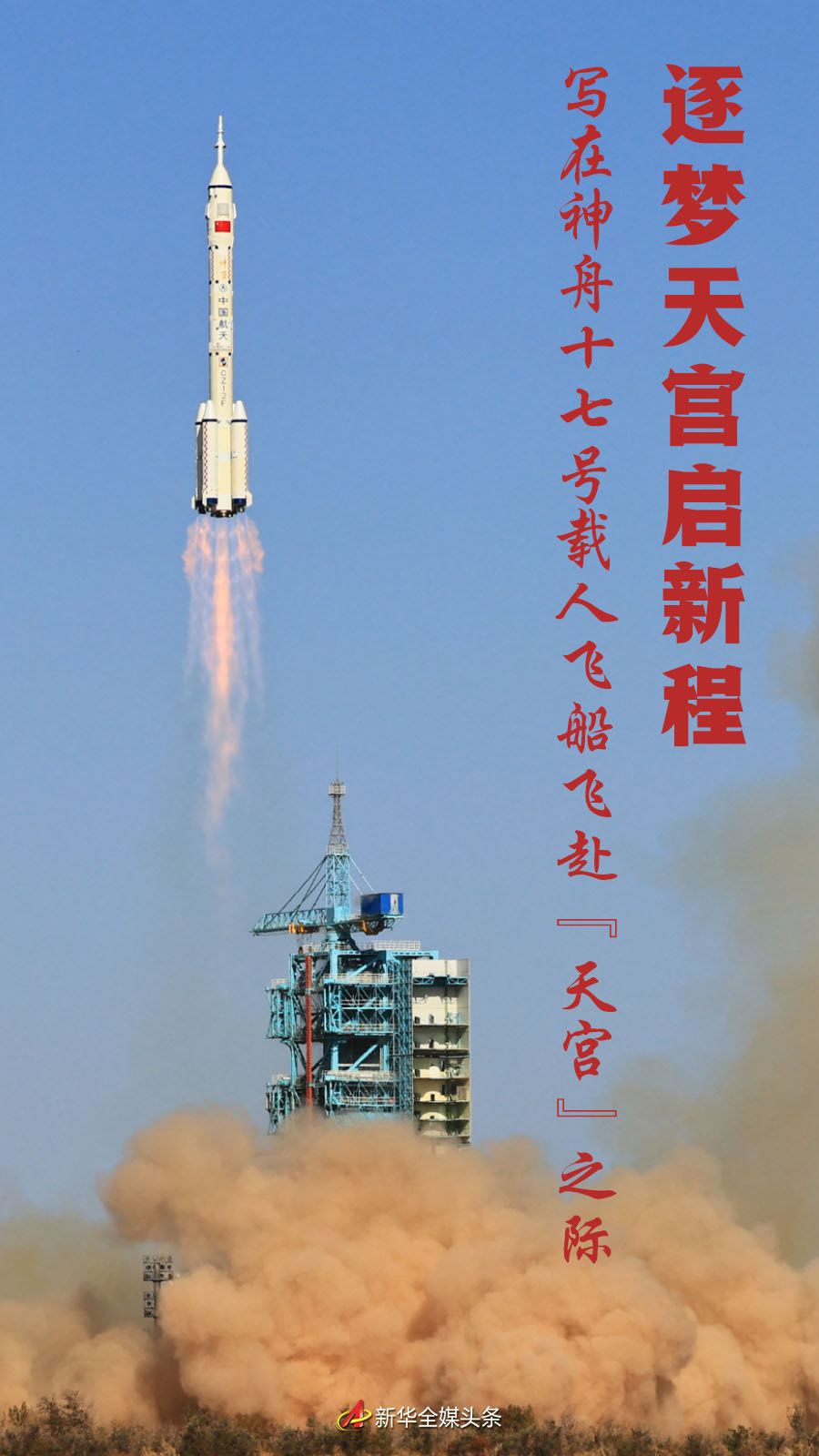 在西北大漠一年中最美的时节,中国人开启飞向太空新的征程——2023年10月26日11时14分,长征二号F遥十七运载火箭托举着神舟十七号载人飞船,在酒泉卫星发射中心点火升空,送汤洪波、唐胜杰、江新林3名航天员奔赴“天宫”。