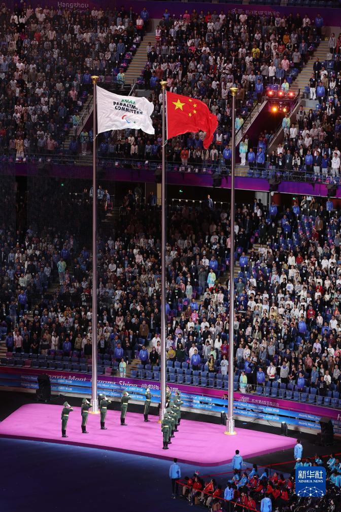 10月28日,亚残奥委员会会旗和中华人民共和国国旗在闭幕式上升起。