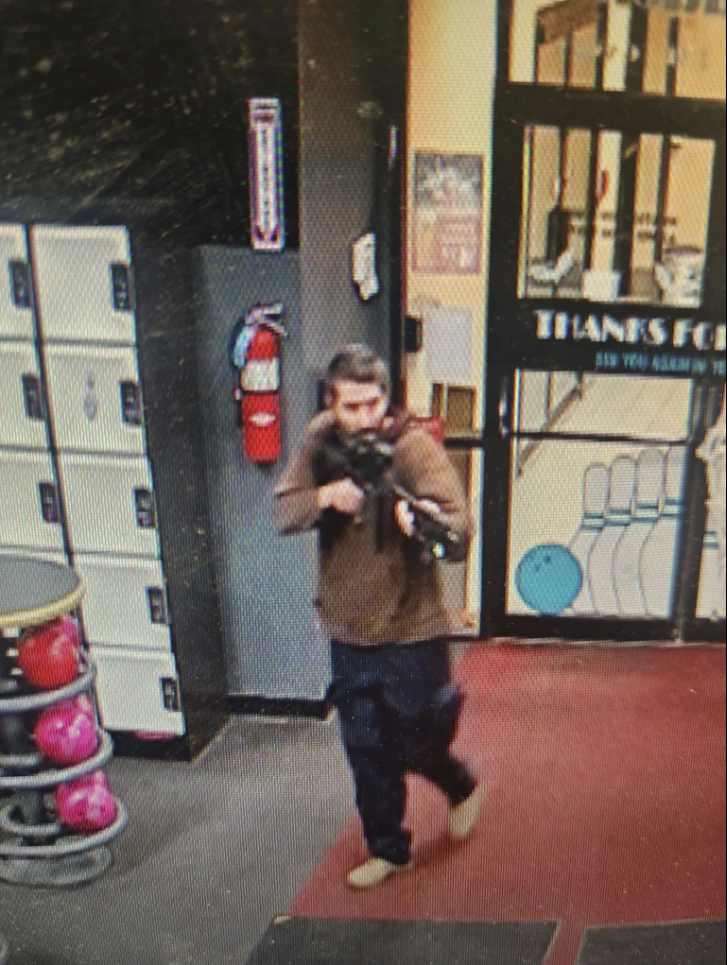 这是10月25日在美国缅因州刘易斯顿市拍摄的一名持枪男子(视频截图)。新华社/美联