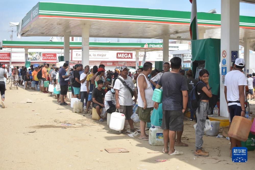 10月28日,在墨西哥格雷罗州阿卡普尔科,人们在一处加油站外排队。新华社发(阿达梅摄)