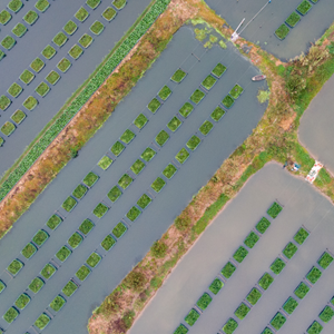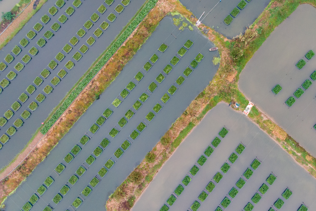 这是10月27日拍摄的湖北省仙桃市张沟镇先锋村的黄鳝养殖网箱(无人机照片)。(杜子璇 摄)