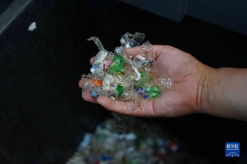 这是废弃塑料瓶经过破碎减量后得到的塑料片(10月30日摄)。新华社记者 林光耀 摄