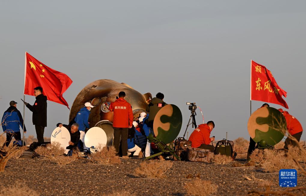 10月31日,神舟十六号载人飞船返回舱在东风着陆场成功着陆。新华社记者 李刚 摄