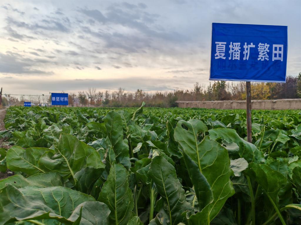 10月30日,新疆昌吉回族自治州玛纳斯县的甜菜种子繁育试验田甜菜长势良好。新华社记者苟立锋 摄