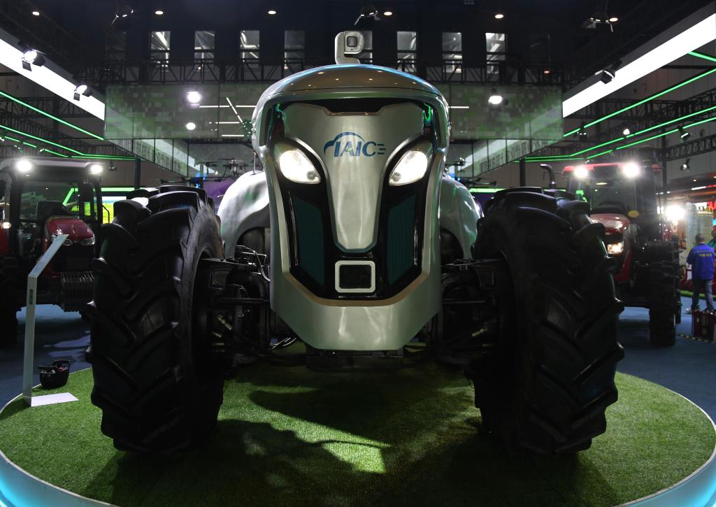 这是第九届四川农业博览会·成都国际都市现代农业博览会上展出的一台无人驾驶拖拉机(10月27日摄)。新华社记者 高健钧 摄