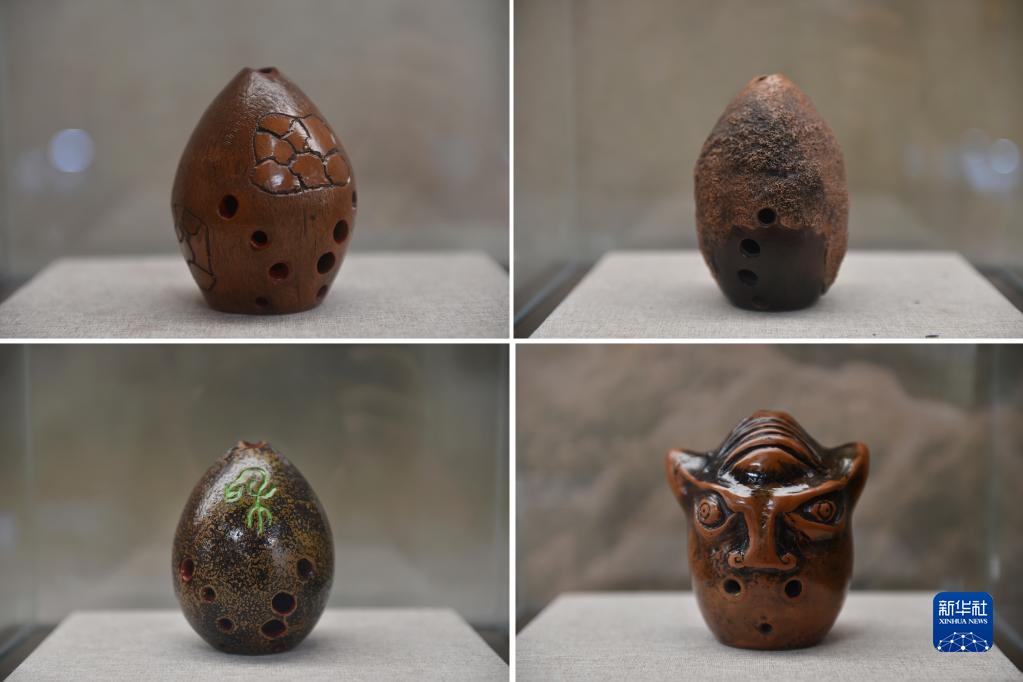 这是在河南省武陟县黄河交通学院黄河文化馆内拍摄的黄河泥埙(拼版照片,10月31日摄)。