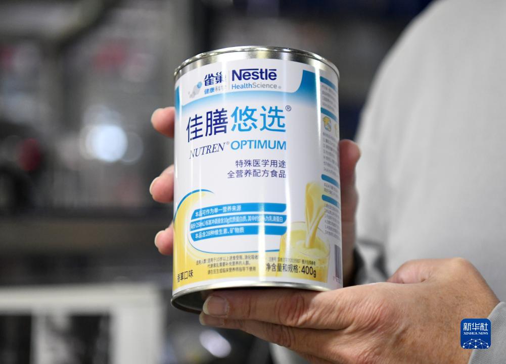 10月31日,在瑞士科诺尔芬根的雀巢工厂,工作人员展示为中国市场生产的产品。