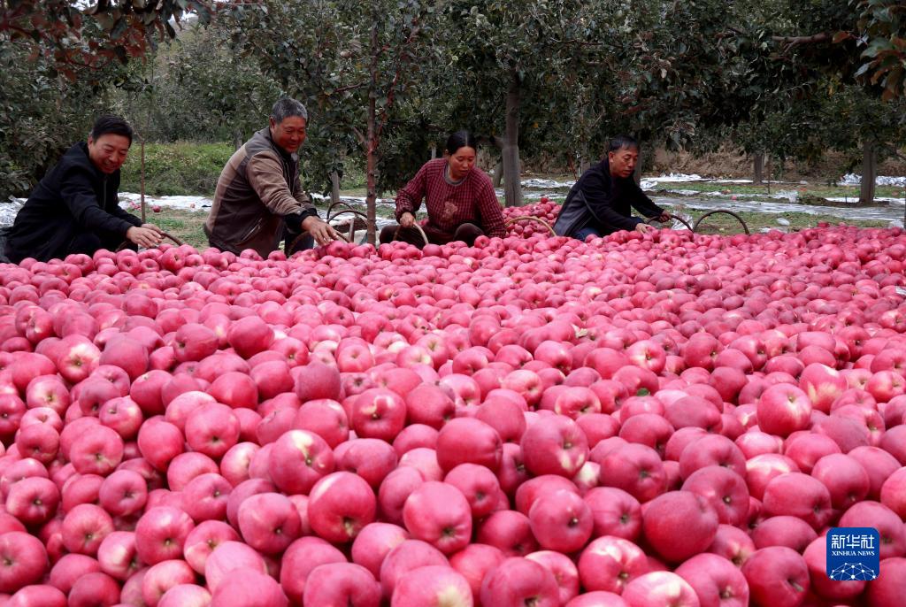 10月30日,在甘肃省平凉市静宁县余湾乡韩马村,果农分拣苹果。