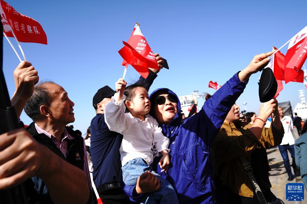 11月1日,在中国极地考察国内基地码头,人们欢送中国第40次南极科学考察队出征。新华社记者 张建松 摄