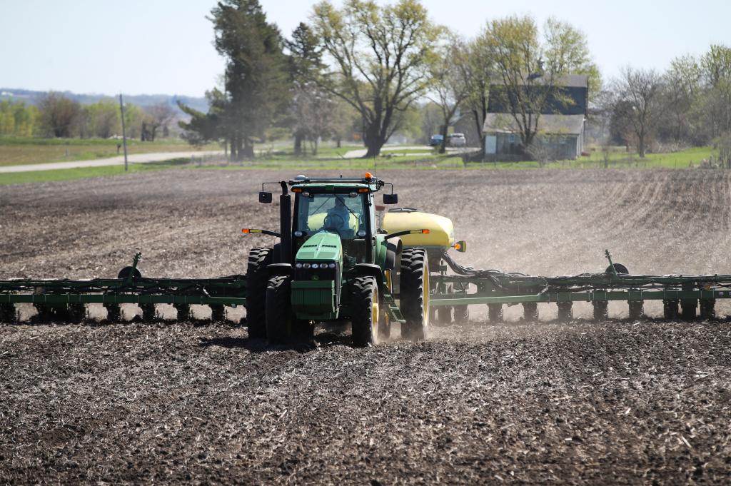 2019年4月,在美国艾奥瓦州的金伯利农场,农民在自家田地里播种。新华社记者王迎 摄