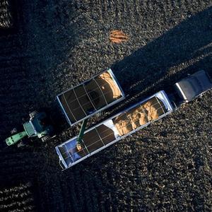2019年10月,在美国艾奥瓦州,粮食中转车将大豆装进卡车。新华社发