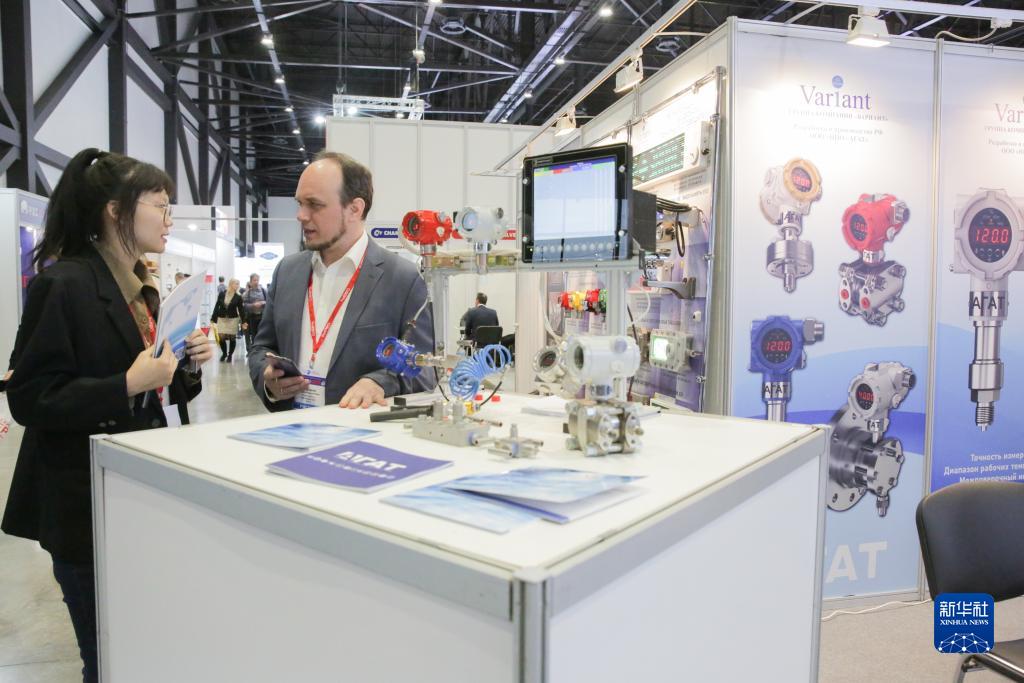 这是11月1日在俄罗斯圣彼得堡拍摄的第十二届圣彼得堡国际天然气论坛的参展中国企业展台。新华社发(莫京娜摄)