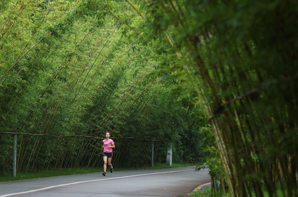 2023年6月30日,市民在四川省宜宾市江安县长江竹岛上跑步。新华社记者 江宏景 摄
