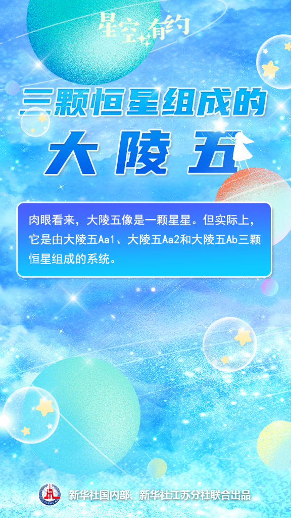 中国科学院紫金山天文台科普主管王科超说,在人们肉眼看来,大陵五只是秋季东北方向天空中一个遥远的亮点,像是一颗星星。但实际上,它是由大陵五Aa1、大陵五Aa2和大陵五Ab三颗恒星组成的系统。这三颗恒星被引力“束缚”在一起,共同组成大陵五这个三合星系统。系统之中三颗星的相对位置还会发生变化,并影响到大陵五的亮度。天文学上把这种亮度时常变化的恒星或恒星系统称作变星。大陵五也是秋季星空著名星座英仙座中的第二亮星。