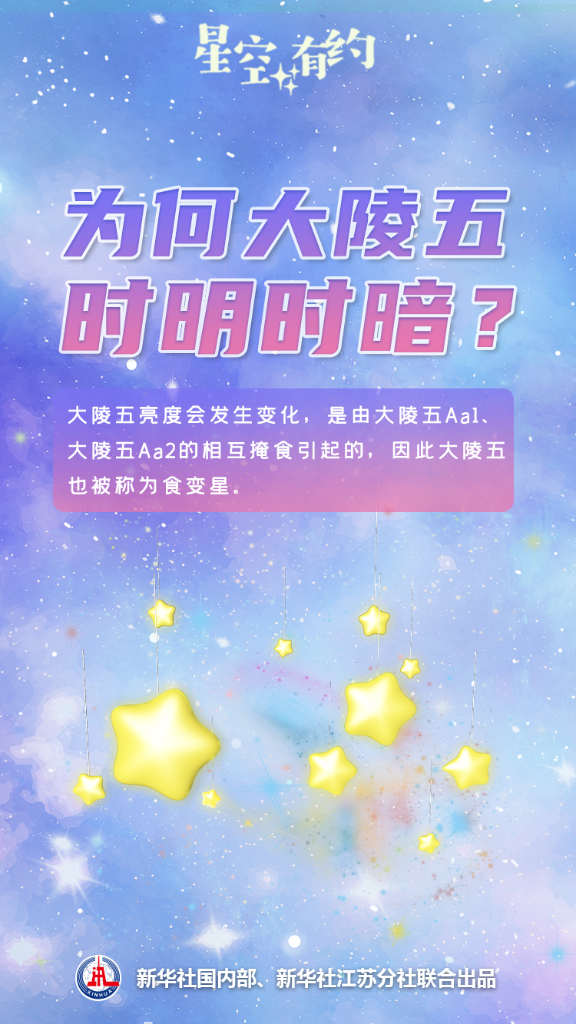 新华社南京11月4日电(记者王珏玢、邱冰清)11月的夜晚,东北方向的夜空之中闪烁着“一颗”时明时暗的星星。每隔两三天,它的亮度就会经历一轮变化,周而复始,就好像会“眨眼”一样。这就是著名的变星:大陵五。变星是怎么回事?大陵五为什么会“眨眼”?天文科普专家为您揭秘。