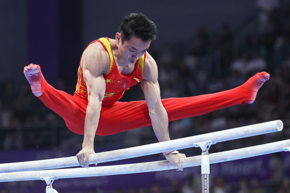 邹敬园在杭州亚运会竞技体操项目男子双杠决赛中