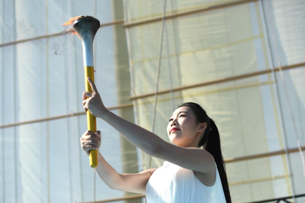 10月23日,第一届全国学生(青年)运动会圣火采集人成功采集圣火。新华社记者 周华 摄