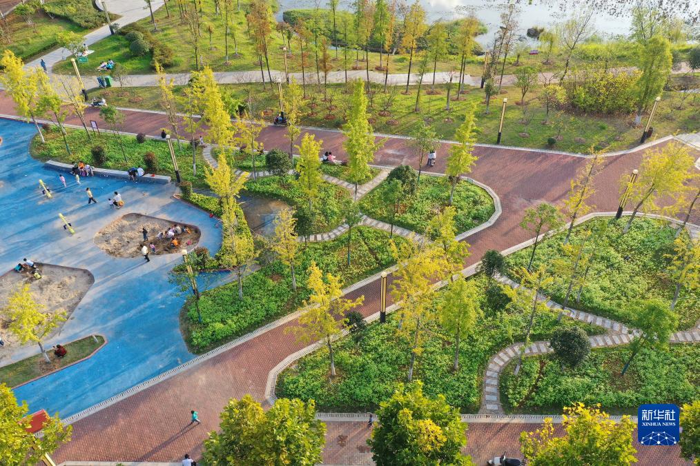 11月4日,人们在湖南省永州市道县绍基公园休闲游玩(无人机照片)。