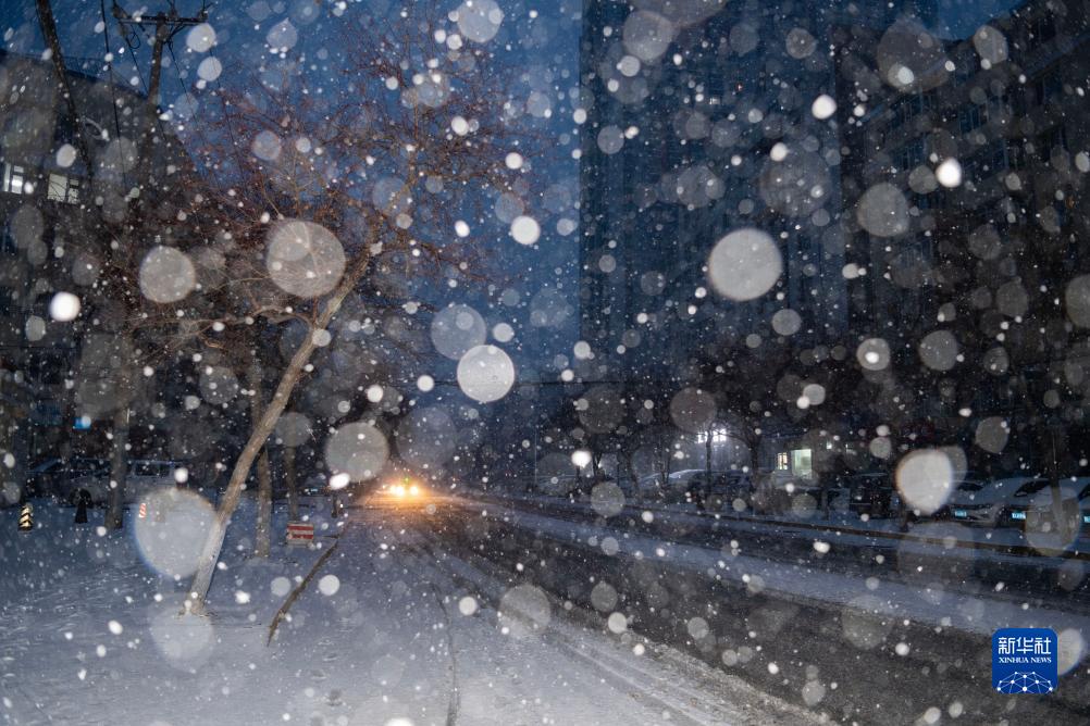 11月6日拍摄的哈尔滨市香坊区街头雪景。