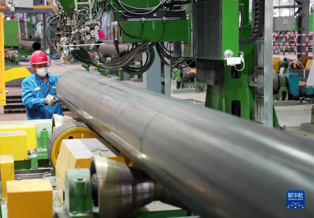 11月5日,工人在秦皇岛经济技术开发区中石油宝世顺(秦皇岛)钢管有限公司钢管生产线上工作。