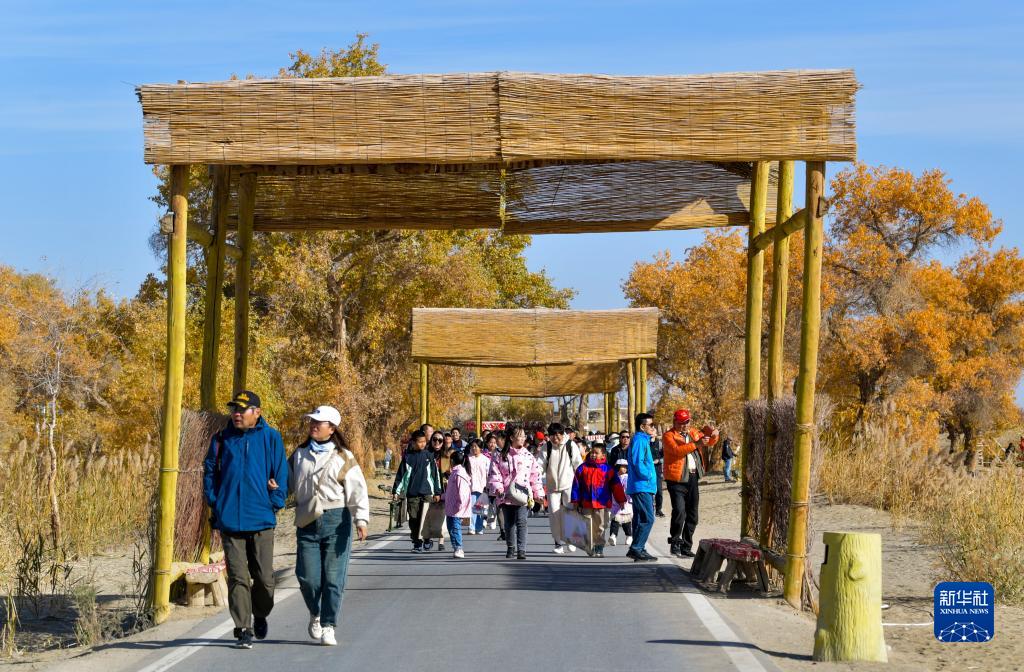 游客在新疆尉犁县罗布人村寨景区游览观光(11月4日摄)。