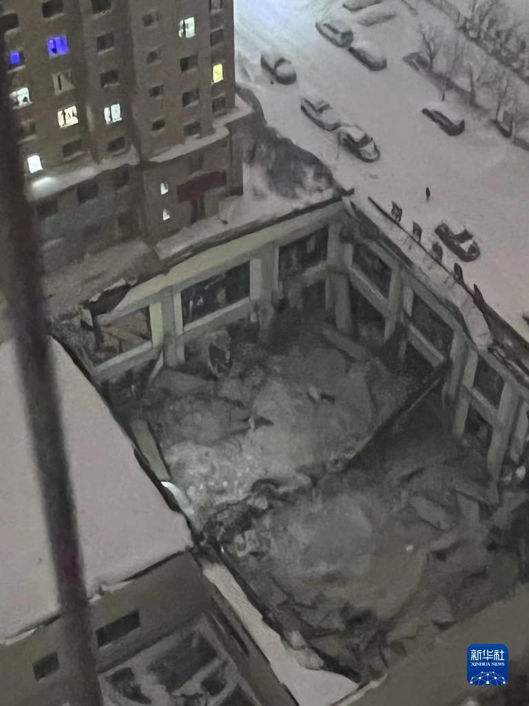 这是11月6日拍摄的事故现场(视频截图)。记者从黑龙江省桦南县政府新闻办了解到,6日19时20分,桦南县悦城健身体育馆发生部分坍塌,目前3人被困,当地政府和消防部门正在全力冒雪营救。新华社发