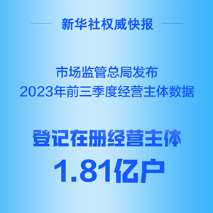 截至2023年9月底,全国登记在册经营主体1.81亿户,较2022年底增长6.7%。