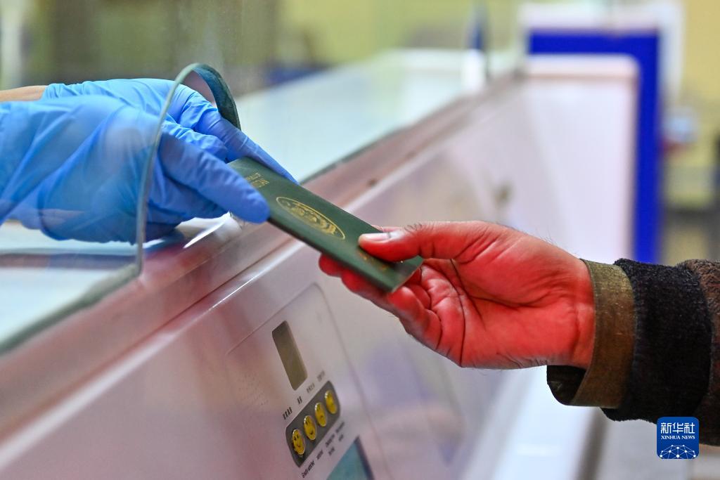 在新疆红其拉甫口岸联检大厅,出境旅客在办理边检手续(11月6日摄)。