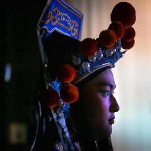 暮色渐起,在湖北戏曲艺术中心(首义剧场)的后台,即将演出的年轻演员们或涂抹油彩、勾画眉目,或梳理髯口、佩戴钗环,或开嗓练声、熟悉走位,繁忙而有序。