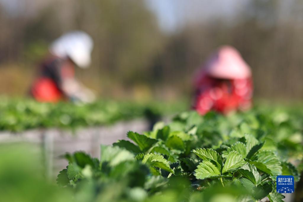 11月8日,江苏省镇江句容市下蜀镇亭子村农民在管护草莓苗。