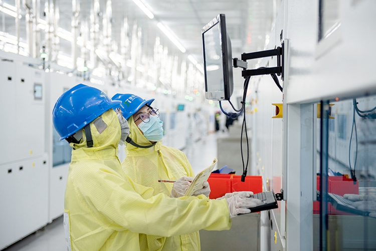 在滁州捷泰新能源科技有限公司生产车间,工人们正在产线上忙碌。(吕华 摄)