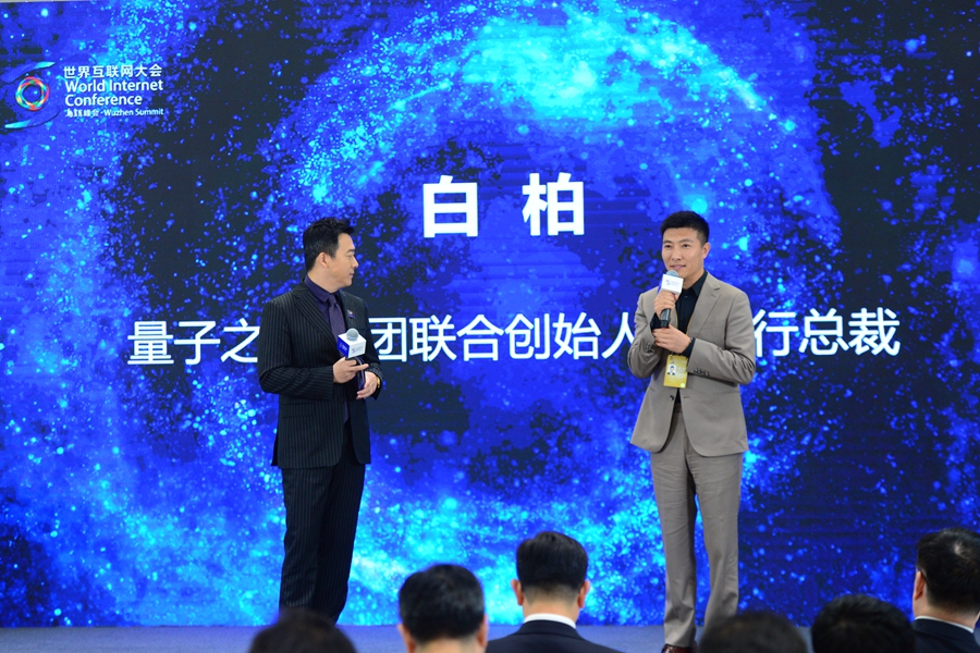 2023年世界互联网大会乌镇峰会数字素养与技能提升论坛11月9日下午在浙江乌镇举行。图为量子之歌集团联合创始人兼执行总裁白柏参加嘉宾对话环节。(新华网 陈竞超 摄)