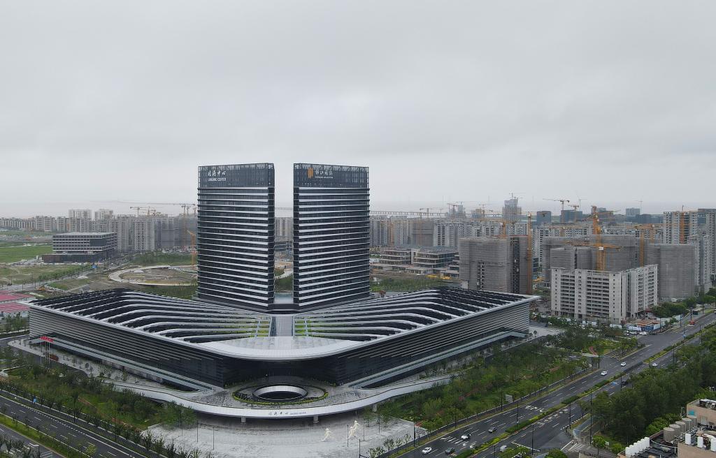 2023年8月1日在中国(上海)自由贸易试验区临港新片区拍摄的临港中心大楼。(新华社记者 方喆 摄)