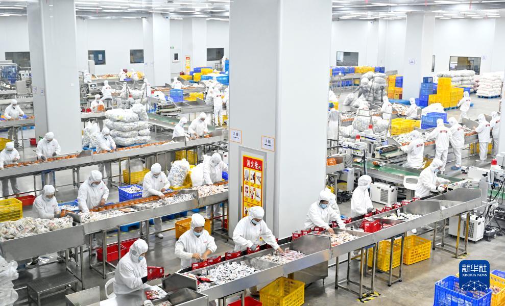 11月8日,工人在广西柳州螺蛳粉产业园一生产车间工作。