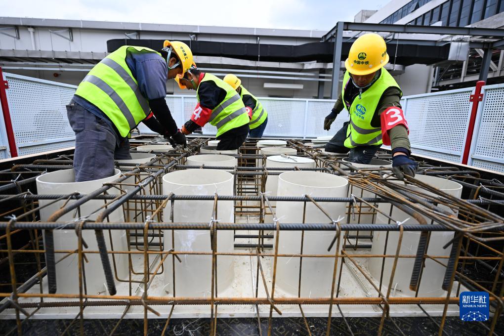 11月10日,工人在项目现场比赛。