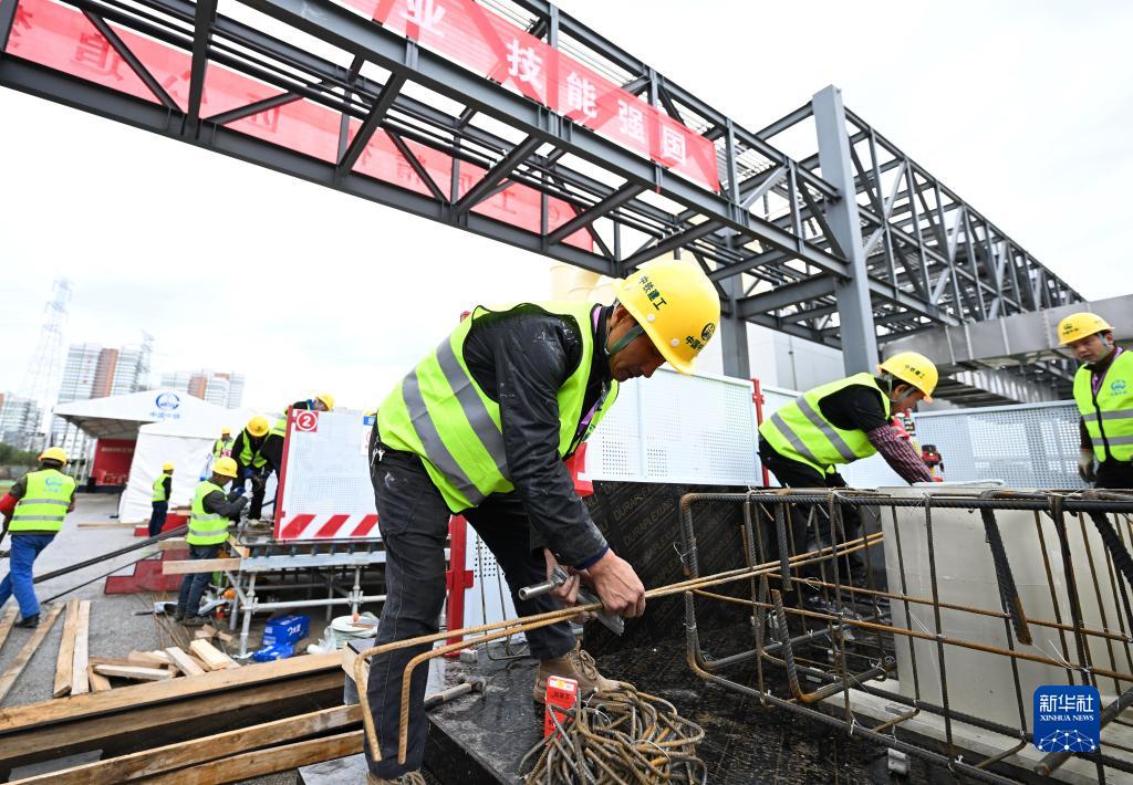当日,中铁建工集团南京大尺寸硅外延材料产业化项目现场举行华夫板安装职业技能竞赛,36名工人比拼技能,一展身手。