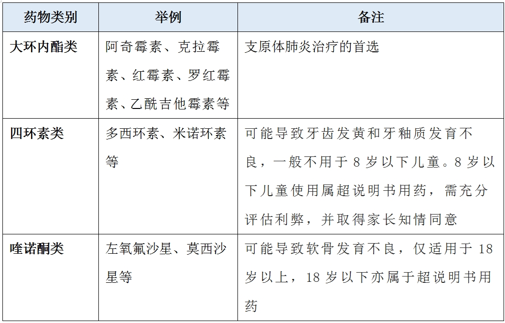 此外,《成人社区获得性肺炎基层合理用药指南》《成人肺炎支原体肺炎诊治专家共识》以及国家卫生健康委员会印发的《儿童肺炎支原体肺炎诊疗指南(2023 年版)》推荐四环素类及喹诺酮类药物也可用于治疗支原体肺炎。