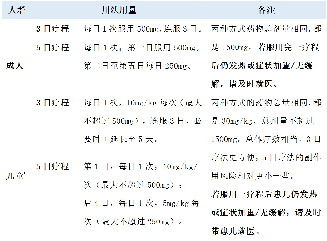 如出现喘息、气促、呼吸困难、胸痛、咯血等可提示重症的可能,请及时就医。口服治疗轻症MPP,一般需要一个疗程,具体如下表所示。