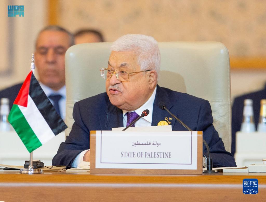 11月11日,在沙特阿拉伯首都利雅得,巴勒斯坦总统阿巴斯出席阿拉伯-伊斯兰国家领导人联合特别峰会。新华社发(沙特通讯社供图)