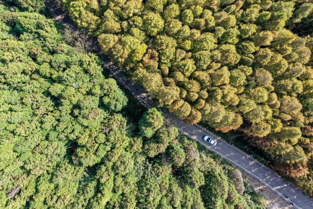 这是11月7日拍摄的“178环线”景色,一辆小汽车行驶在“178环线”上(无人机照片)。新华社记者唐奕 摄