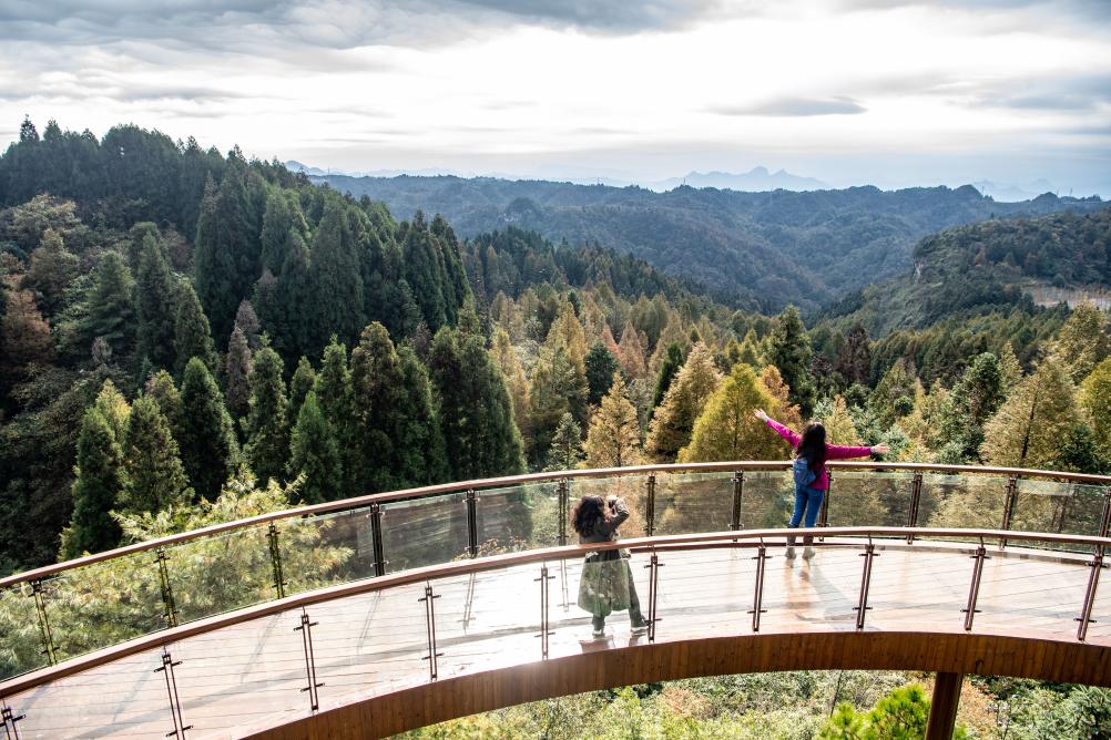 11月7日,游客在“178环线”上的著名景点山王坪内参观游览。新华社记者唐奕 摄