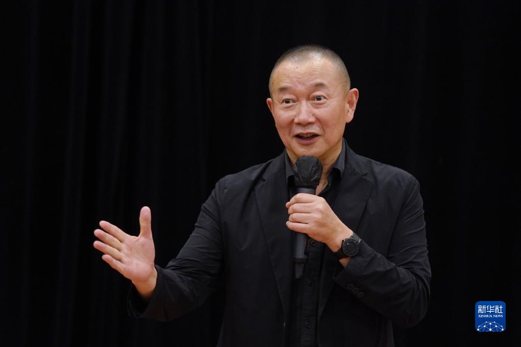 11月13日,香港文化推广大使、著名作曲家谭盾在香港文化中心接受记者采访。新华社记者 王申 摄