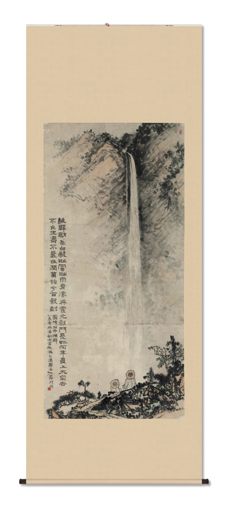 1955年,潘天寿、潘韵游历雁荡山而合作的龙湫飞瀑图。(乐清市委宣传部供图)