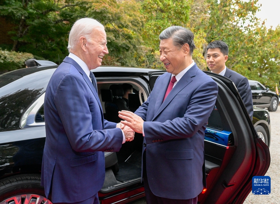 当地时间11月15日,国家主席习近平同美国总统拜登在斐洛里庄园举行中美元首会晤。这是会谈后,拜登亲自将习近平送到上车处道别。