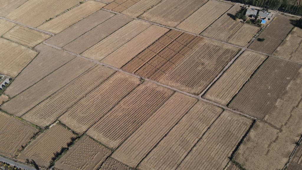 这是在武南镇拍摄的采用浅埋滴灌水肥一体化小麦种植技术的农田(无人机照片)。新华社记者 王朋 摄