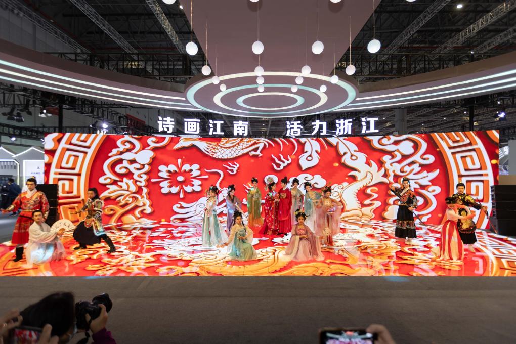 11月16日在浙江展位拍摄的古装表演。新华社记者王翔 摄
