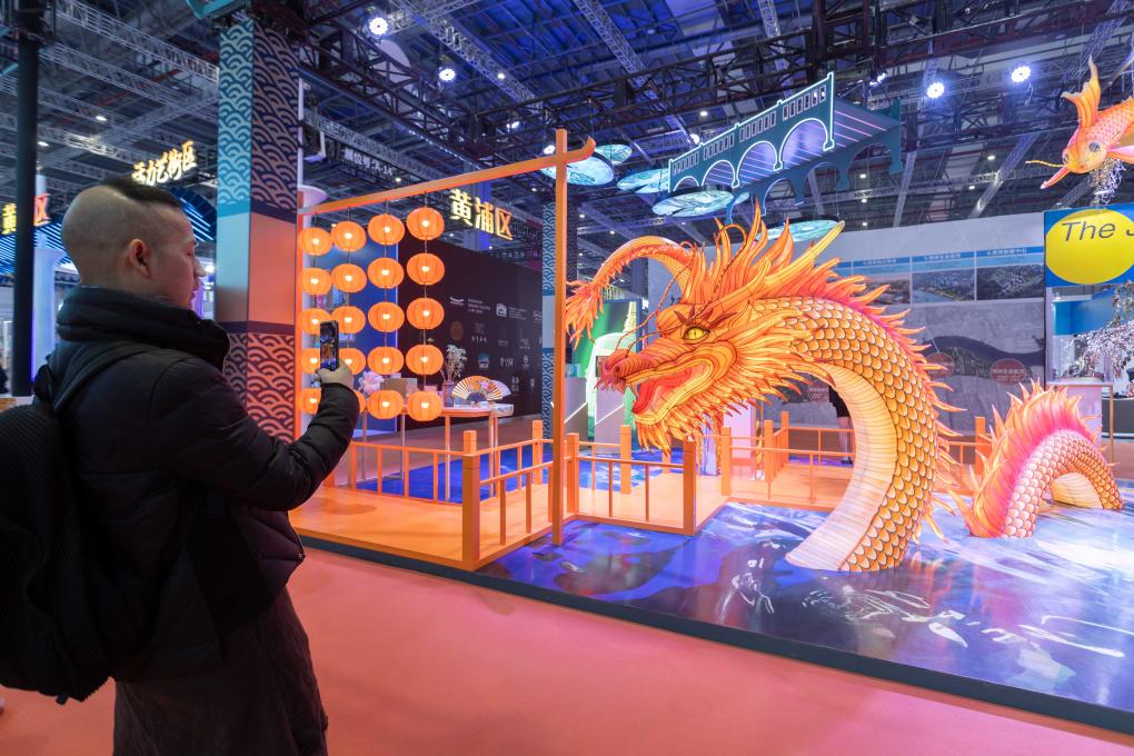 本届文博会上,久负盛名的上海豫园灯会展出了灵感来自《山海经》的“山海有灵”奇幻灯光场景。豫园股份副总裁胡俊杰介绍,第29届豫园灯会将首次走出国门,在法国和中国两地共同举办。