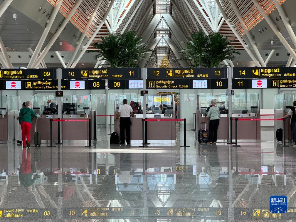 11月16日,旅客在柬埔寨暹粒吴哥国际机场办理手续。新华社发(廖泓清 摄)