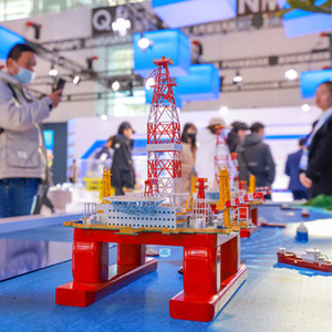 11月17日,观众在参观海工装备模型。新华社记者 孙凡越 摄