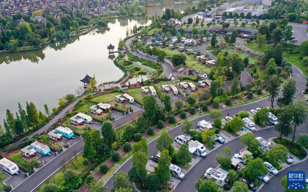 这是11月17日拍摄的重庆璧山秀湖汽车露营公园景色(无人机照片)。